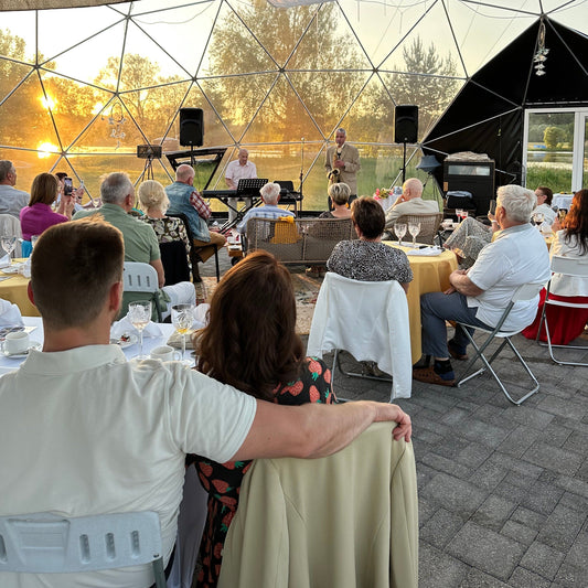 Pirmo reizi bijām tik elegantā un reizē personiskā koncertā. Paldies par skaisto gaisotni un lielisko koncerta atmosfēru! Gaumīgi izdekorētajā kupolā ir silti un mājīgi, izbaudījām romantisko lietus čabēšanu sveču gaismā pie skaisti klātiem galdiņiem ar gardām uzkodām. Saimnieki gādīgi un atsaucīgi, noskaņa maģiska!