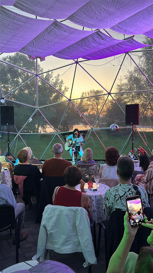 Pirmo reizi bijām tik elegantā un reizē personiskā koncertā. Paldies par skaisto gaisotni un lielisko koncerta atmosfēru! Gaumīgi izdekorētajā kupolā ir silti un mājīgi, izbaudījām romantisko lietus čabēšanu sveču gaismā pie skaisti klātiem galdiņiem ar gardām uzkodām. Saimnieki gādīgi un atsaucīgi, noskaņa maģiska!