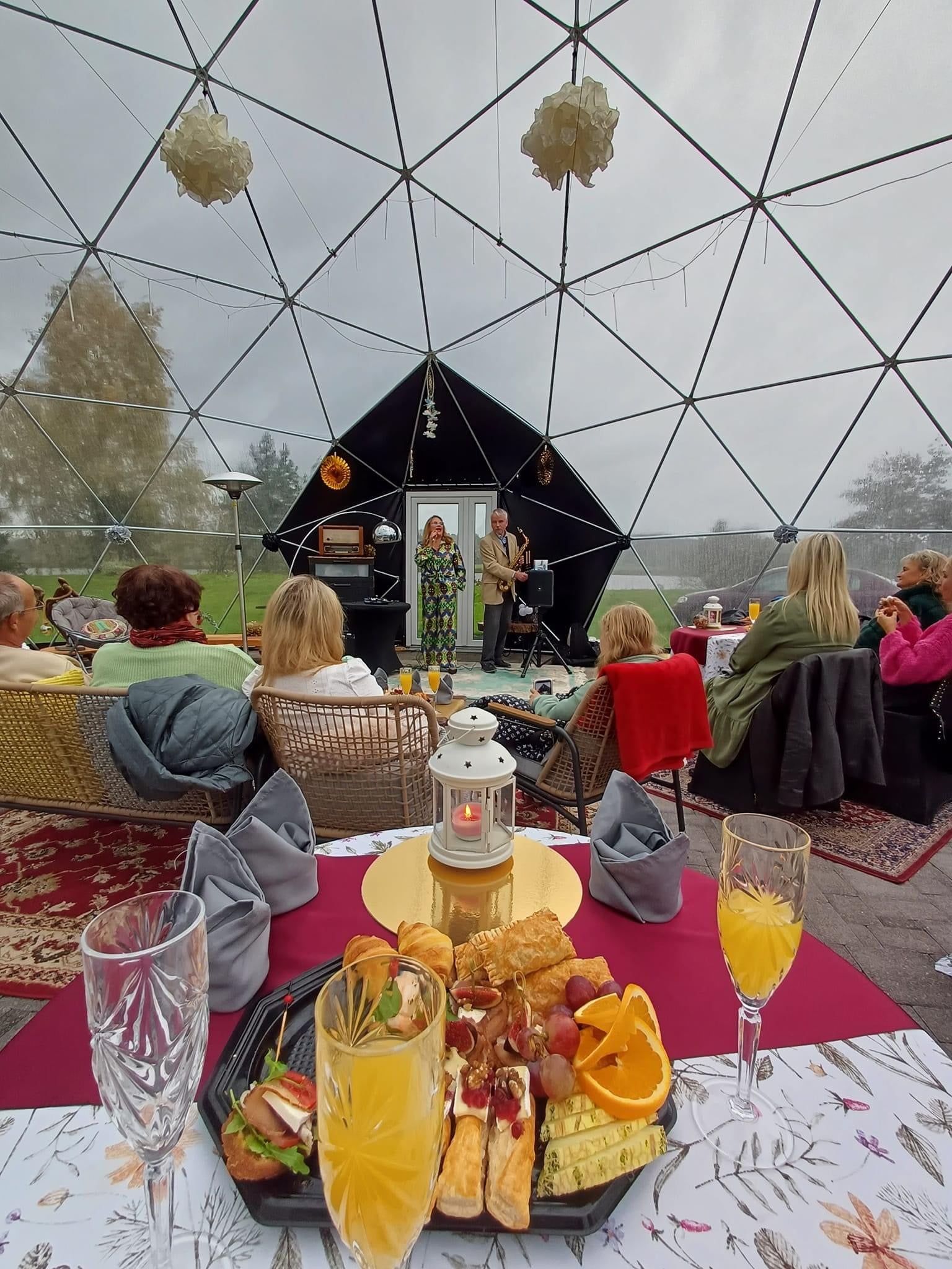 Pirmo reizi bijām tik elegantā un reizē personiskā koncertā. Paldies par skaisto gaisotni un lielisko koncerta atmosfēru! Gaumīgi izdekorētajā kupolā ir silti un mājīgi, izbaudījām romantisko lietus čabēšanu sveču gaismā pie skaisti klātiem galdiņiem ar gardām uzkodām. Saimnieki gādīgi un atsaucīgi, noskaņa maģiska!