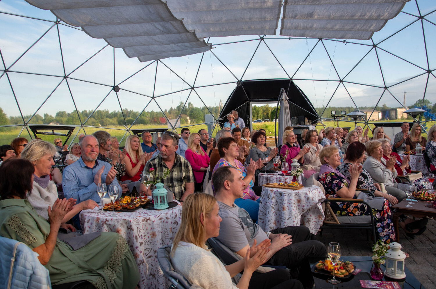 Pirmo reizi bijām tik elegantā un reizē personiskā koncertā. Paldies par skaisto gaisotni un lielisko koncerta atmosfēru! Gaumīgi izdekorētajā kupolā ir silti un mājīgi, izbaudījām romantisko lietus čabēšanu sveču gaismā pie skaisti klātiem galdiņiem ar gardām uzkodām. Saimnieki gādīgi un atsaucīgi, noskaņa maģiska!