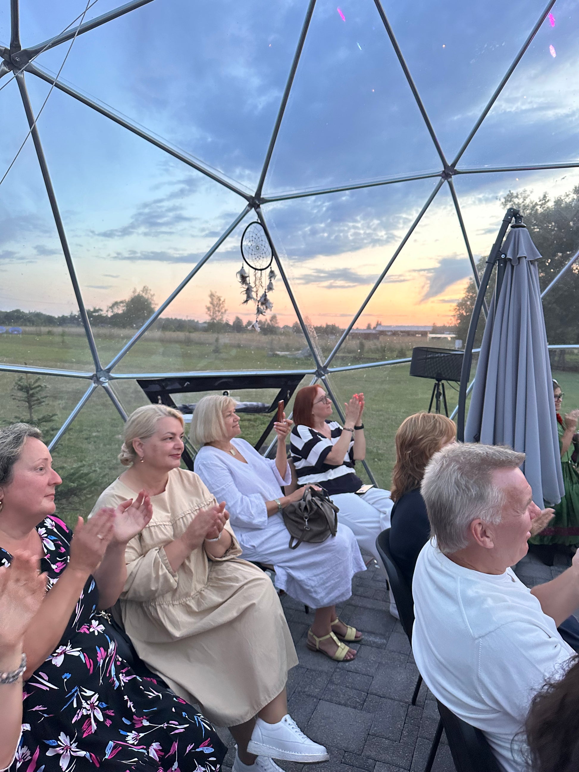 Koncerts ļoti patika. Liels prieks par sakopto vidi, pozitīvajiem cilvēkiem un foršajiem kupola saimniekiem. Par visu padomāts, skaisti un gaumīgi izrotāts un izgaismots. Noteikti gribēsim atgriezties pie Jums. Un par garšīgo kūku atsevišķi liels PALDIES!