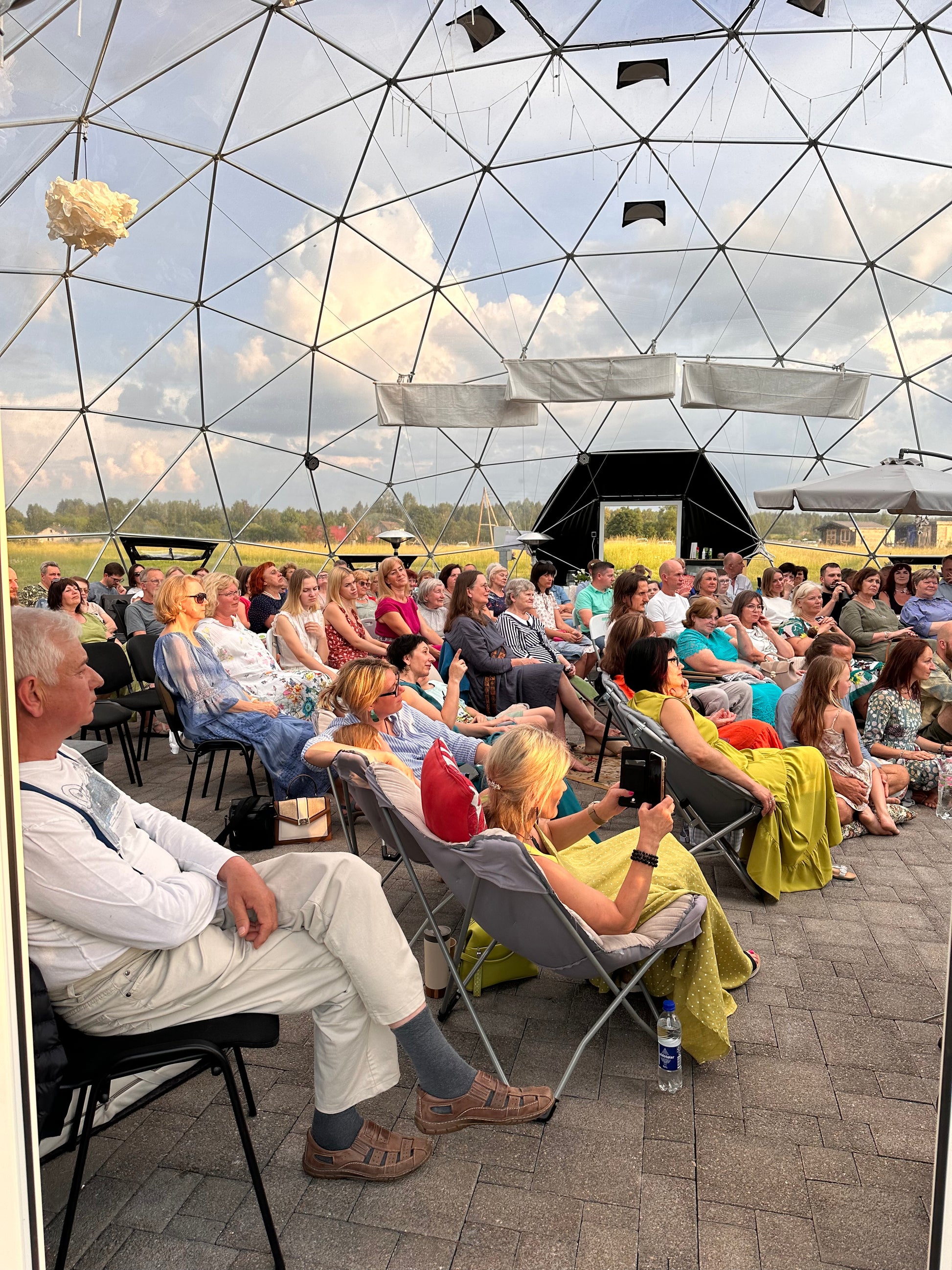 Pirmo reizi bijām tik elegantā un reizē personiskā koncertā. Paldies par skaisto gaisotni un lielisko koncerta atmosfēru! Gaumīgi izdekorētajā kupolā ir silti un mājīgi, izbaudījām romantisko lietus čabēšanu sveču gaismā pie skaisti klātiem galdiņiem ar gardām uzkodām. Saimnieki gādīgi un atsaucīgi, noskaņa maģiska!