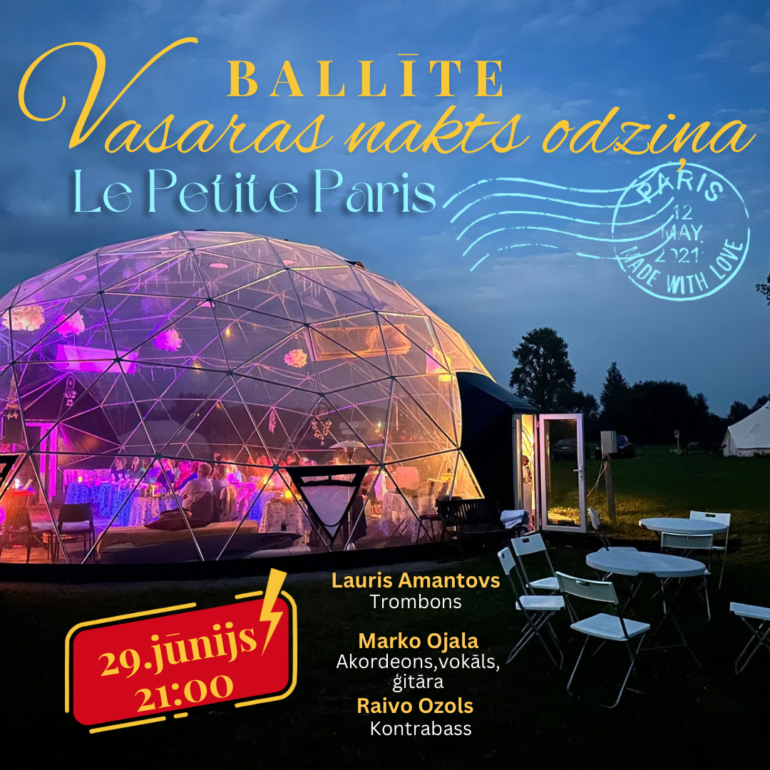 29.jūnijs 21:00 Ballīte "Vasaras nakts odziņa" džeza trio "Le Petit Paris"