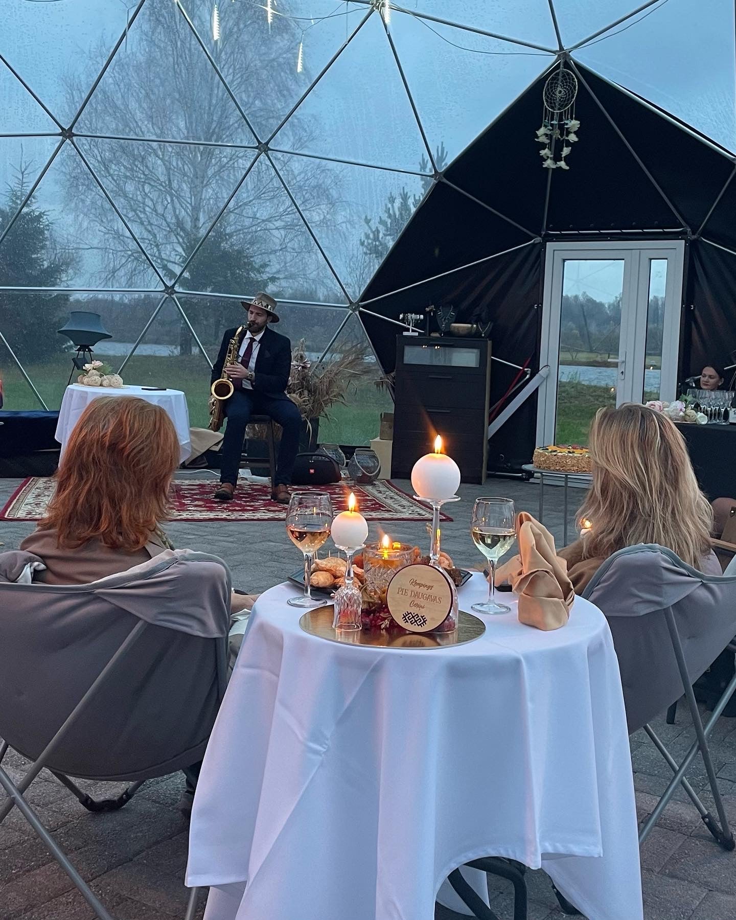 Pirmo reizi bijām tik elegantā un reizē personiskā koncertā. Paldies par skaisto gaisotni un lielisko koncerta atmosfēru! Gaumīgi izdekorētajā kupolā ir silti un mājīgi, izbaudījām romantisko lietus čabēšanu sveču gaismā pie skaisti klātiem galdiņiem ar gardām uzkodām. Saimnieki gādīgi un atsaucīgi, noskaņa maģiska!