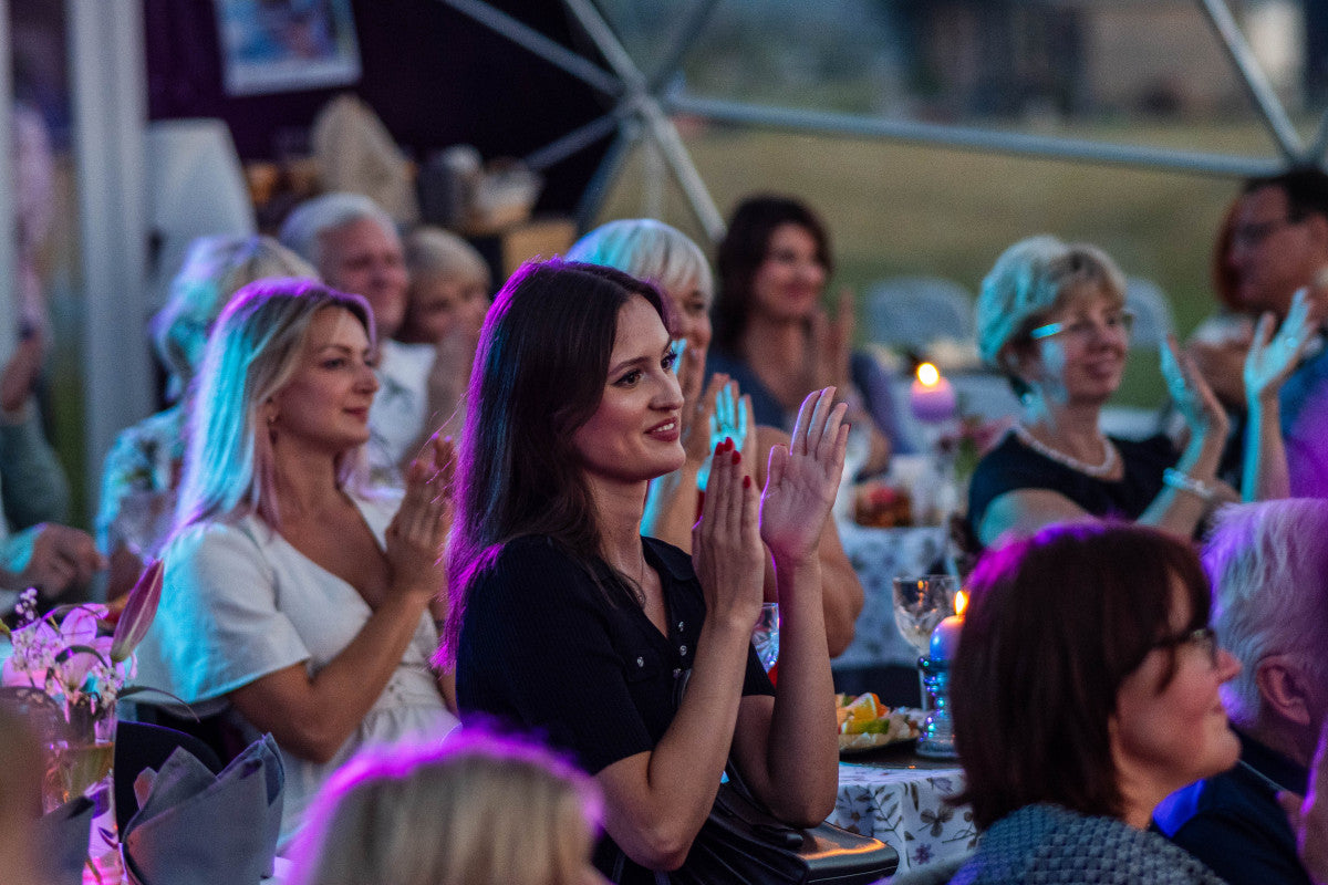 Pirmo reizi bijām tik elegantā un reizē personiskā koncertā. Paldies par skaisto gaisotni un lielisko koncerta atmosfēru! Gaumīgi izdekorētajā kupolā ir silti un mājīgi, izbaudījām romantisko lietus čabēšanu sveču gaismā pie skaisti klātiem galdiņiem ar gardām uzkodām. Saimnieki gādīgi un atsaucīgi, noskaņa maģiska!