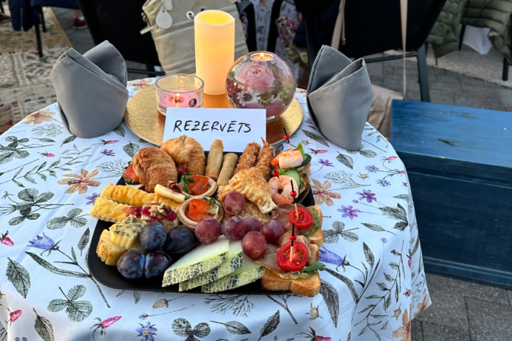 VIP vieta pie galdiņa, katrai rezervācijai savs galdiņš ar uzkodām no vietējā gardēžu veikaliņa Lauva.