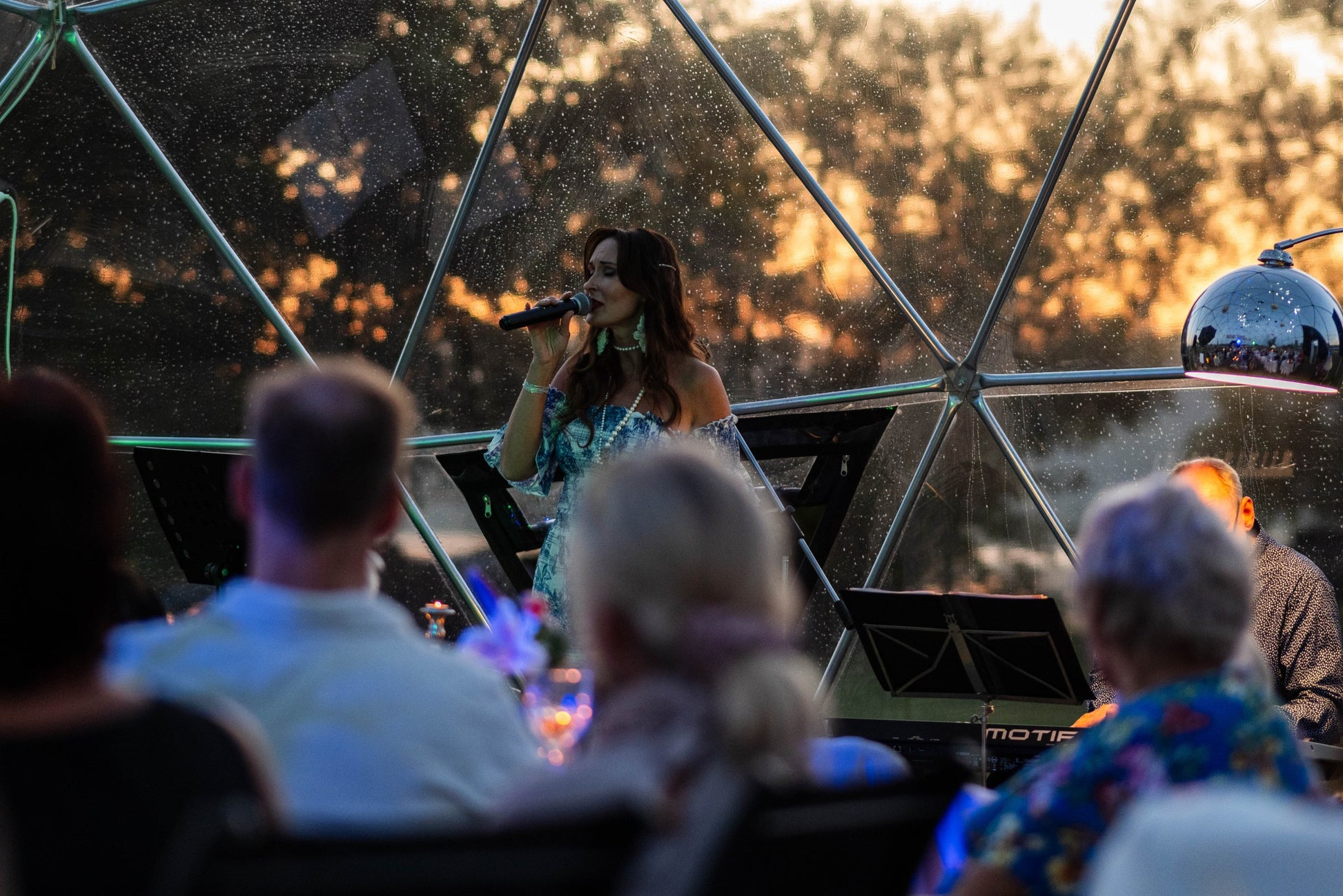 Pirmo reizi bijām tik elegantā un reizē personiskā koncertā. Paldies par skaisto gaisotni un lielisko koncerta atmosfēru! Gaumīgi izdekorētajā kupolā ir silti un mājīgi, izbaudījām romantisko lietus čabēšanu sveču gaismā pie skaisti klātiem galdiņiem ar gardām uzkodām. Saimnieki gādīgi un atsaucīgi, noskaņa maģiska!