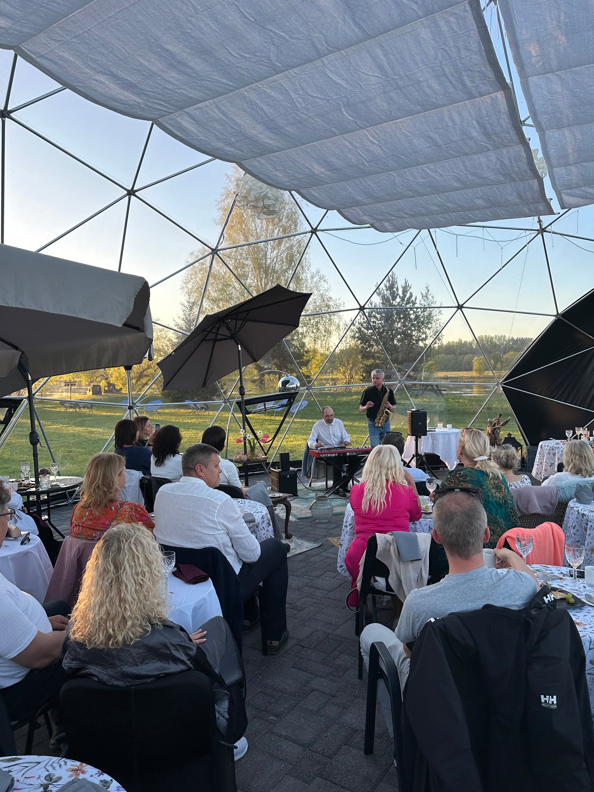 Pirmo reizi bijām tik elegantā un reizē personiskā koncertā. Paldies par skaisto gaisotni un lielisko koncerta atmosfēru! Gaumīgi izdekorētajā kupolā ir silti un mājīgi, izbaudījām romantisko lietus čabēšanu sveču gaismā pie skaisti klātiem galdiņiem ar gardām uzkodām. Saimnieki gādīgi un atsaucīgi, noskaņa maģiska!