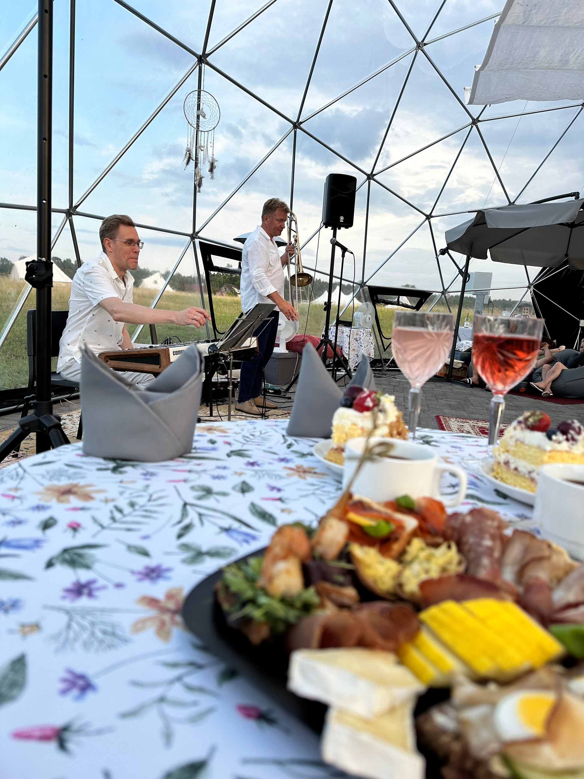 Pirmo reizi bijām tik elegantā un reizē personiskā koncertā. Paldies par skaisto gaisotni un lielisko koncerta atmosfēru! Gaumīgi izdekorētajā kupolā ir silti un mājīgi, izbaudījām romantisko lietus čabēšanu sveču gaismā pie skaisti klātiem galdiņiem ar gardām uzkodām. Saimnieki gādīgi un atsaucīgi, noskaņa maģiska!